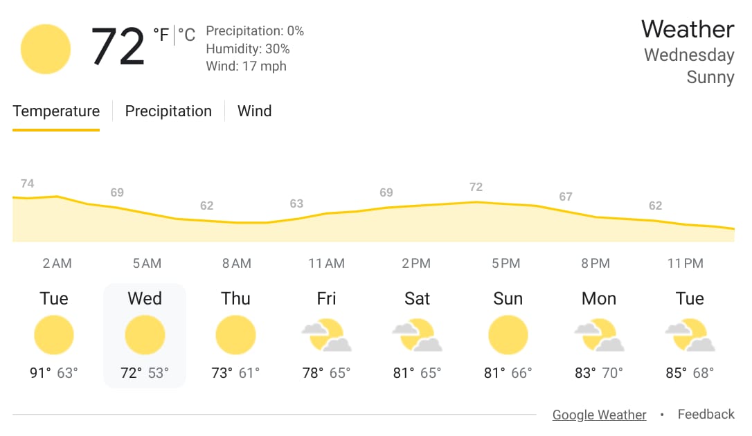 Today’s Record High: 95 in 2016 — Record Low: 34 in 2001