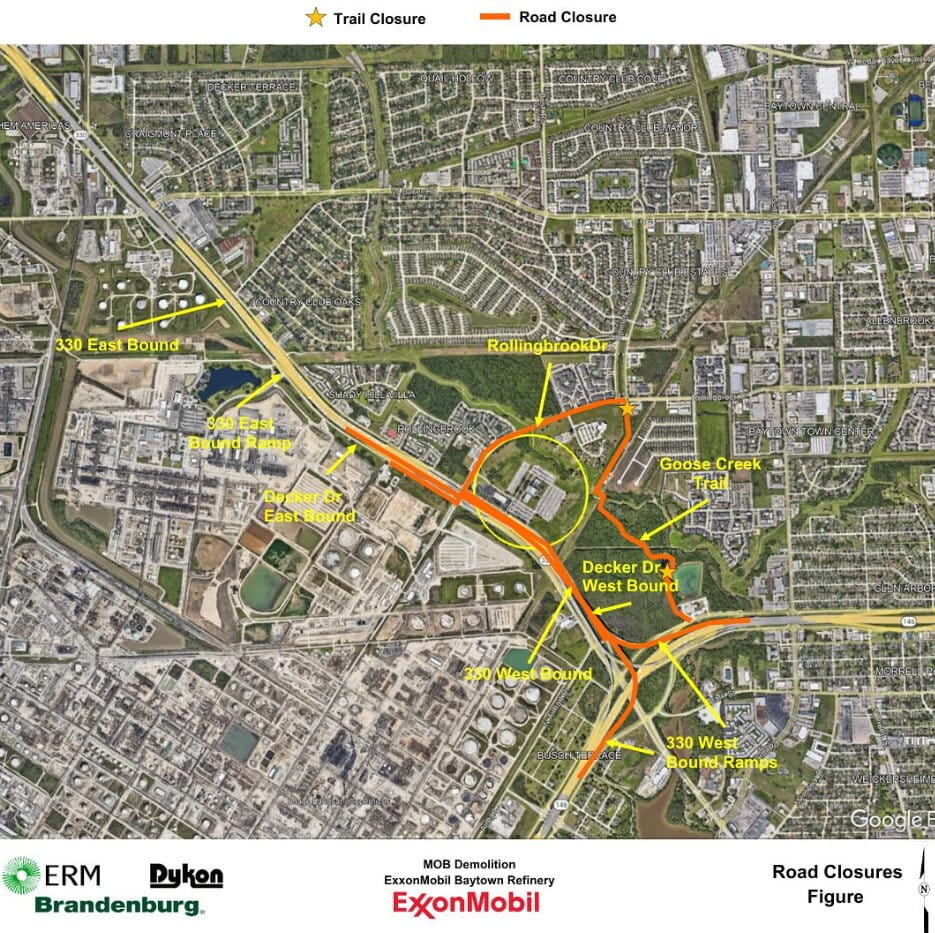 Below is the official statement from ExxonMobil regarding the demolition, along with a map of temporary road closures.