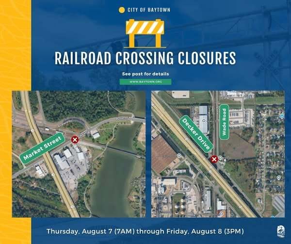 Heads up, Baytown drivers! Union Pacific will be performing railroad maintenance this week that will require temporary road closures at two locations: