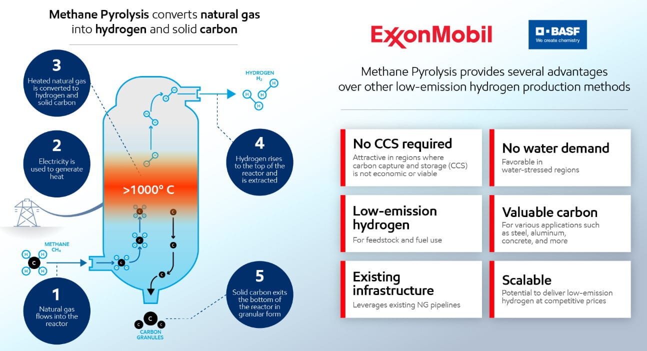 ExxonMobil says methane pyrolysis fits into its broader strategy to develop hydrogen solutions that can work across many regions and existing energy systems. The company describes the partnership with BASF as a milestone in its efforts to deliver scalable and efficient hydrogen technologies.