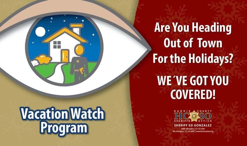 For our readers who live in the unincorporated areas of Harris County — did you know the Harris County Sheriff’s Office offers a free Vacation Watch program? If you’re planning to travel for the holidays, HCSO deputies can keep an extra eye on your home while you’re away.👀
