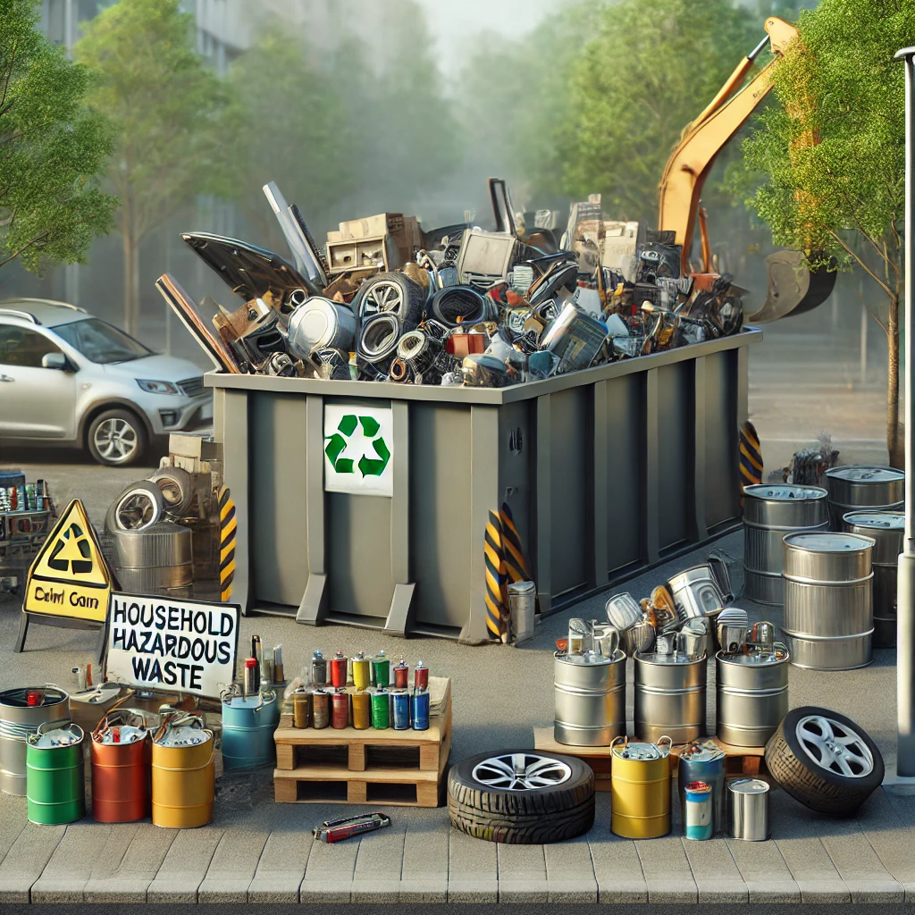 Hazardous Waste: Antifreeze, gasoline, fuels, household cleaners, pool chemicals, car batteries, paint products (up to 5 gallons), pesticides, fertilizers, motor oil, and filters.