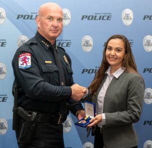 Detective Hammes collaborated with state and federal agencies to track down individuals using credit card skimmers to steal financial information. Her efforts led to the identification of a suspect vehicle in Beaumont, resulting in the arrest of two foreign nationals on multiple charges.
